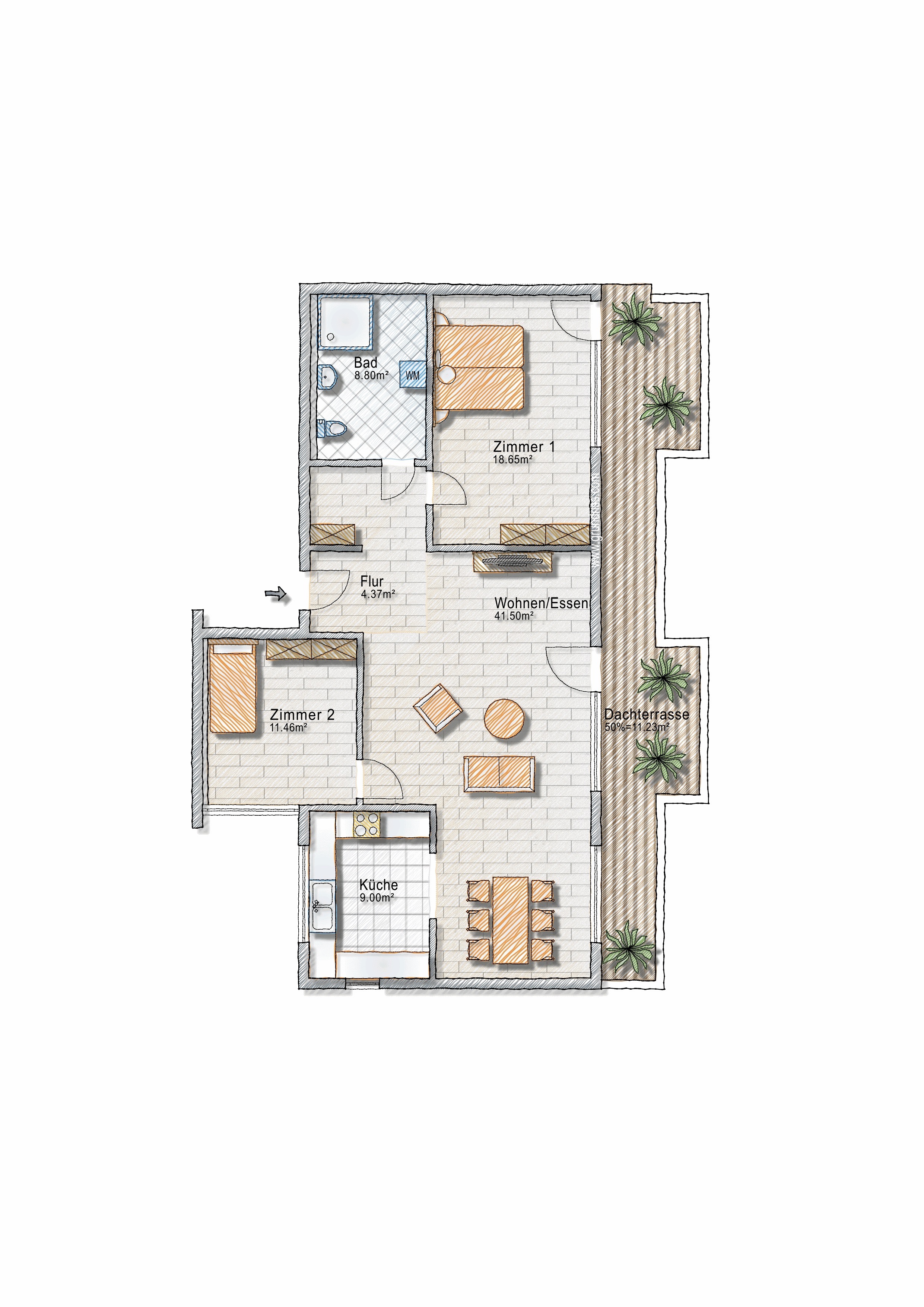3,5 ZKB-Dachterrassenwohnung in exklusiver Senioren – Residenz "St. Bonifatius"