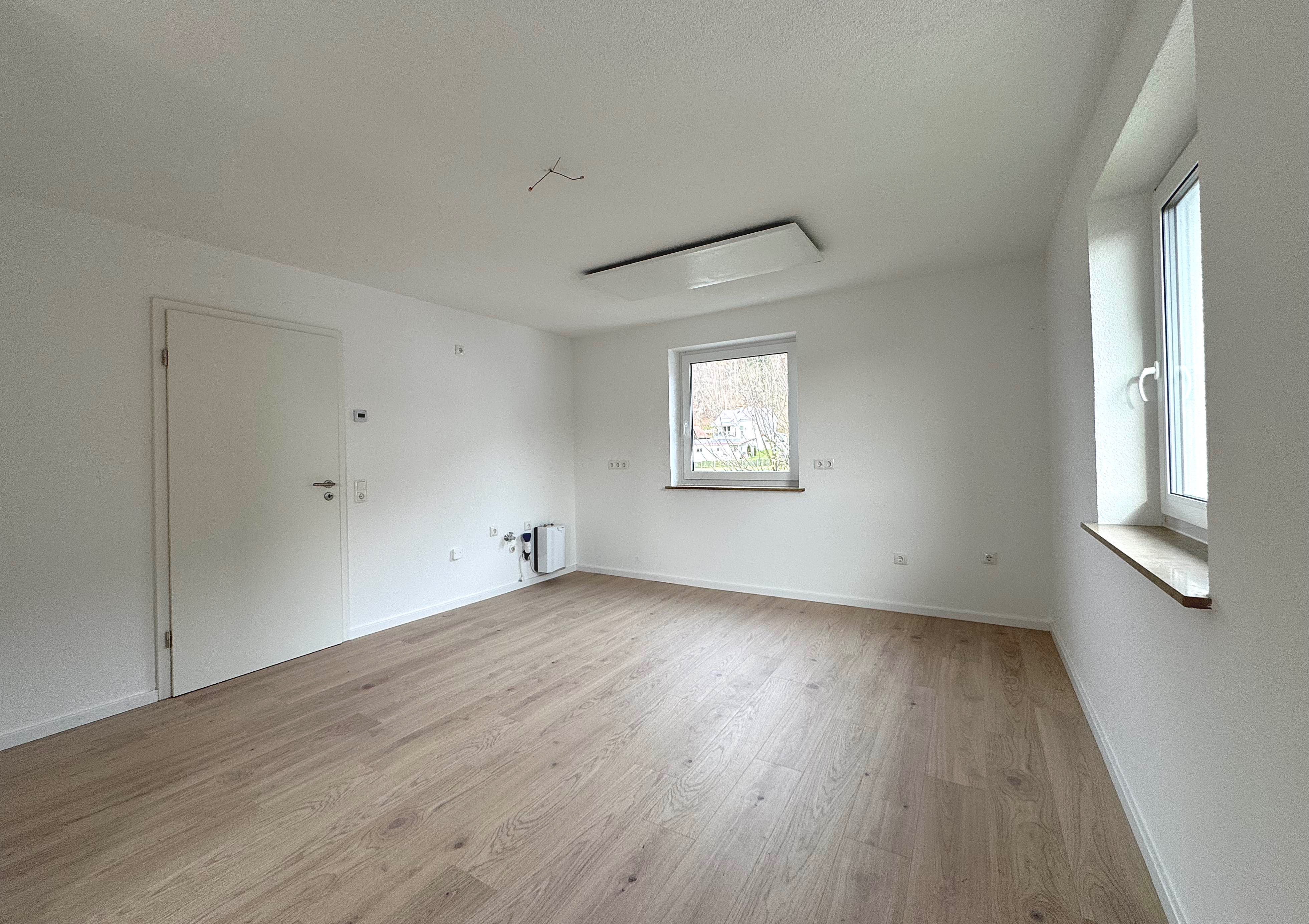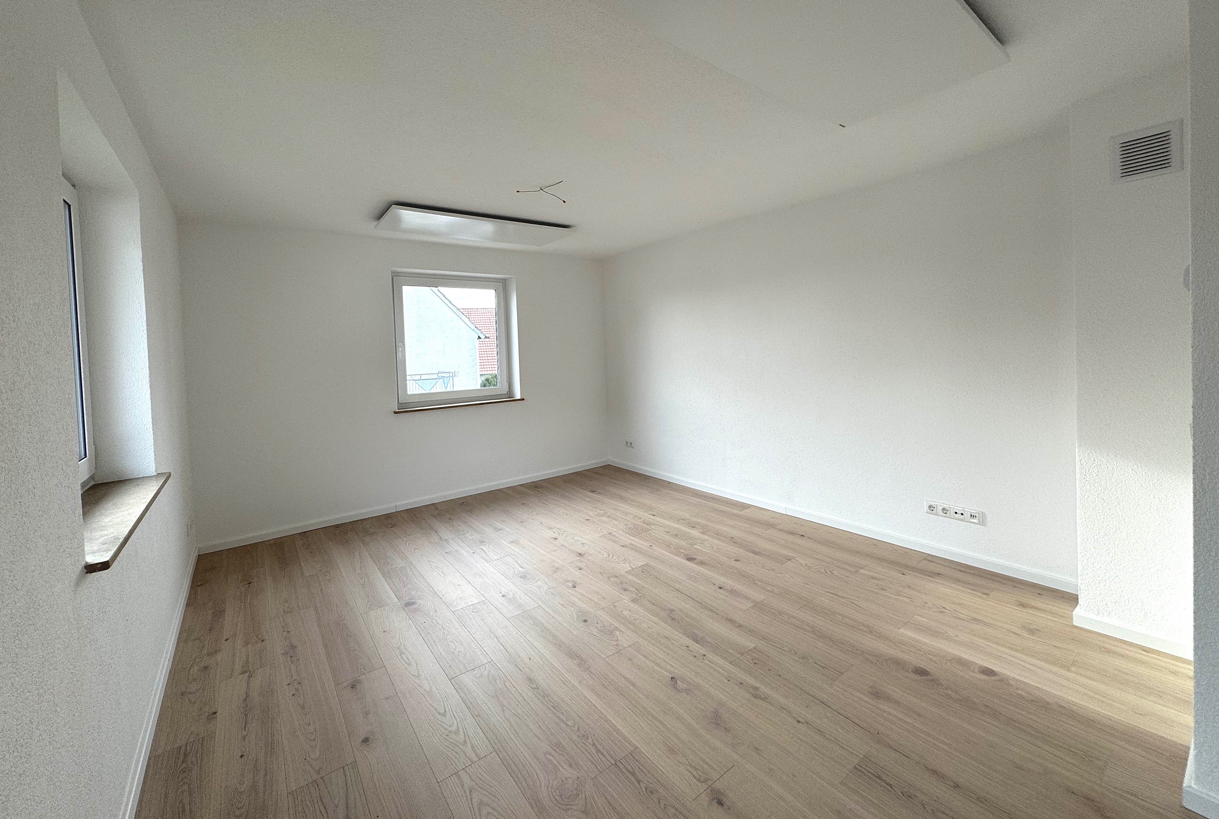 Die Maisonettewohnung befindet sich in einem freistehenden Zweifamilienhaus mit Garten, der von Ihnen auch mitbenutzt werden kann. Die Wohnung selbst liegt im 1.OG und ist durch eine gut begehbare Treppe mit dem DG verbunden, in dem sich 2 Schlafzimmer und ein großes Studio (Galerie) mit Sichtbalken befindet. Das Haus wurde im letzten Jahr mit viel Liebe saniert und die Wohnung ist somit Erstbezug. Ein Schwedenofen kann zusätzlich aufgestellt werden, der mit der neuen innovativen Infrarotheizung für eine wohlige Wärme sorgt.