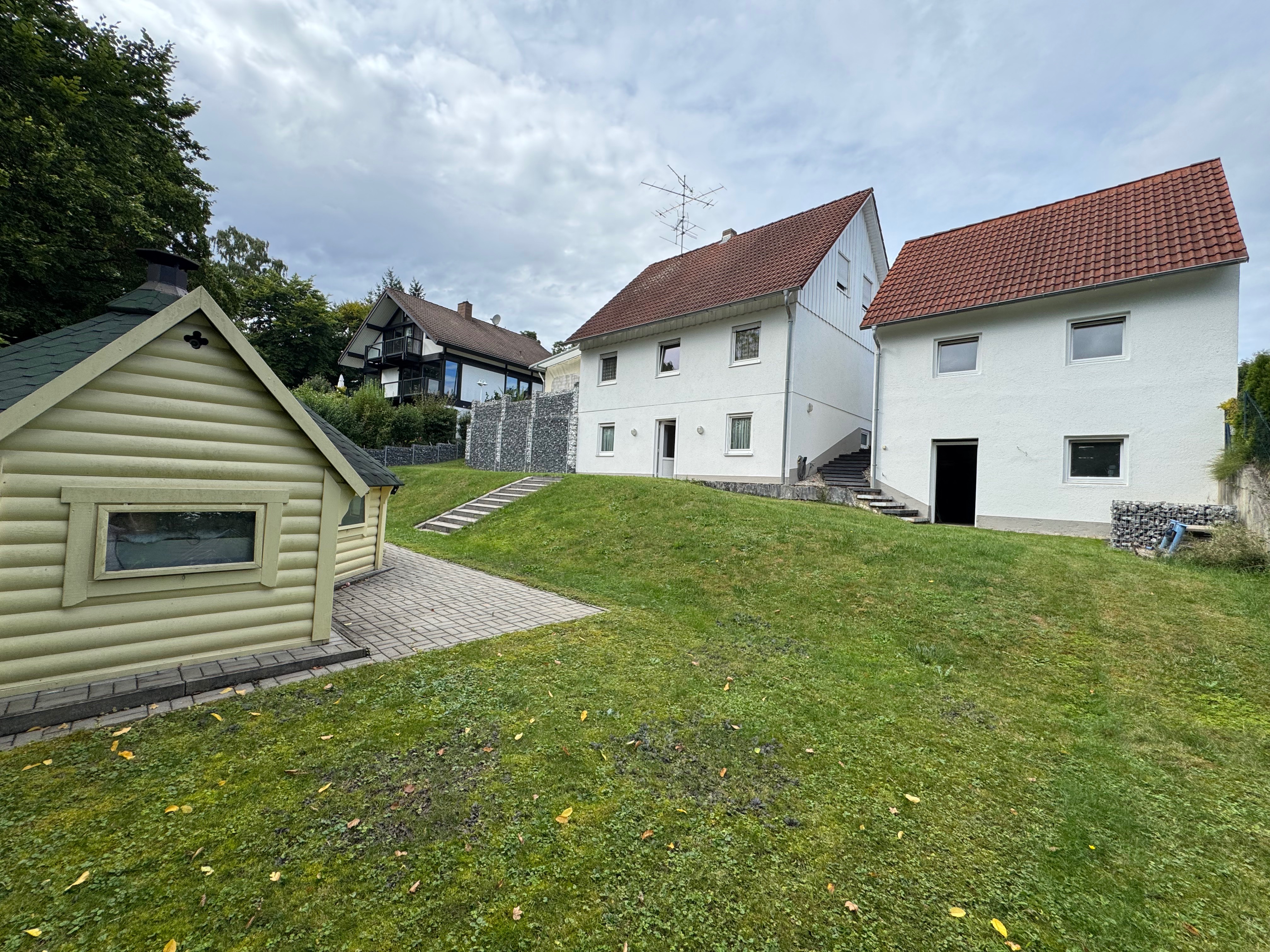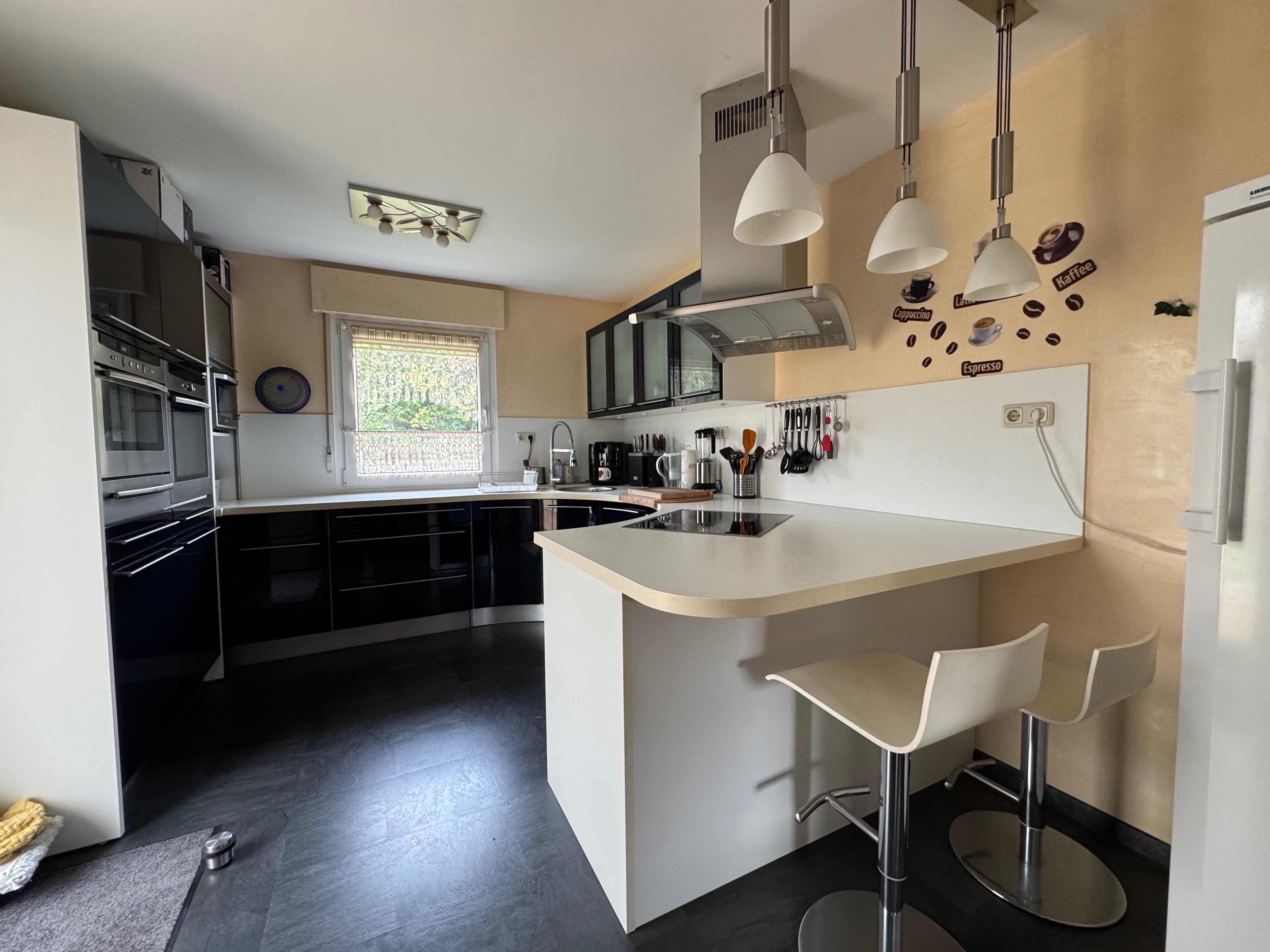 Das in den Hang gebaute Einfamilienhaus verfügt im Untergeschoß über eine großzügige Einliegerwohnung mit eigener Terrasse und Gartenzugang. Eine weitere Terrasse mit Pergola befindet sich an der Hauptwohnung. Der schön eingewachsene Garten lädt mit seinem massiven Gartenhaus zum Feiern und verweilen ein. Die Doppelgarage ist unterkellert. Den Keller und die Einliegerwohnung betreten Sie vom Garten aus ebenerdig. Neben der hochwertigen Einbauküche ist die untere Wohnung ebenfalls mit einer Küchenzeile ausgestattet.